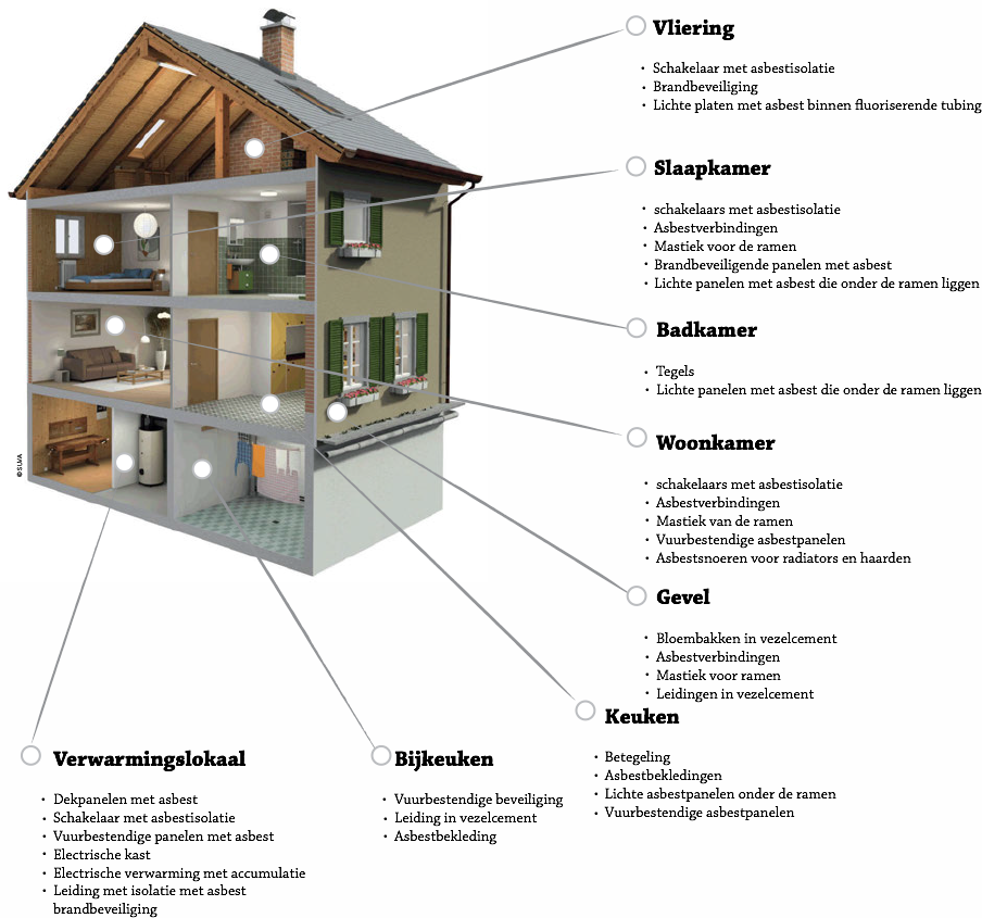 - mélangé à du ciment amiante ciment(amiante-ciment) dans de multiples composés pour la construction : plaques ondulées, éléments de façade, gaines de ventilation, canalisations…